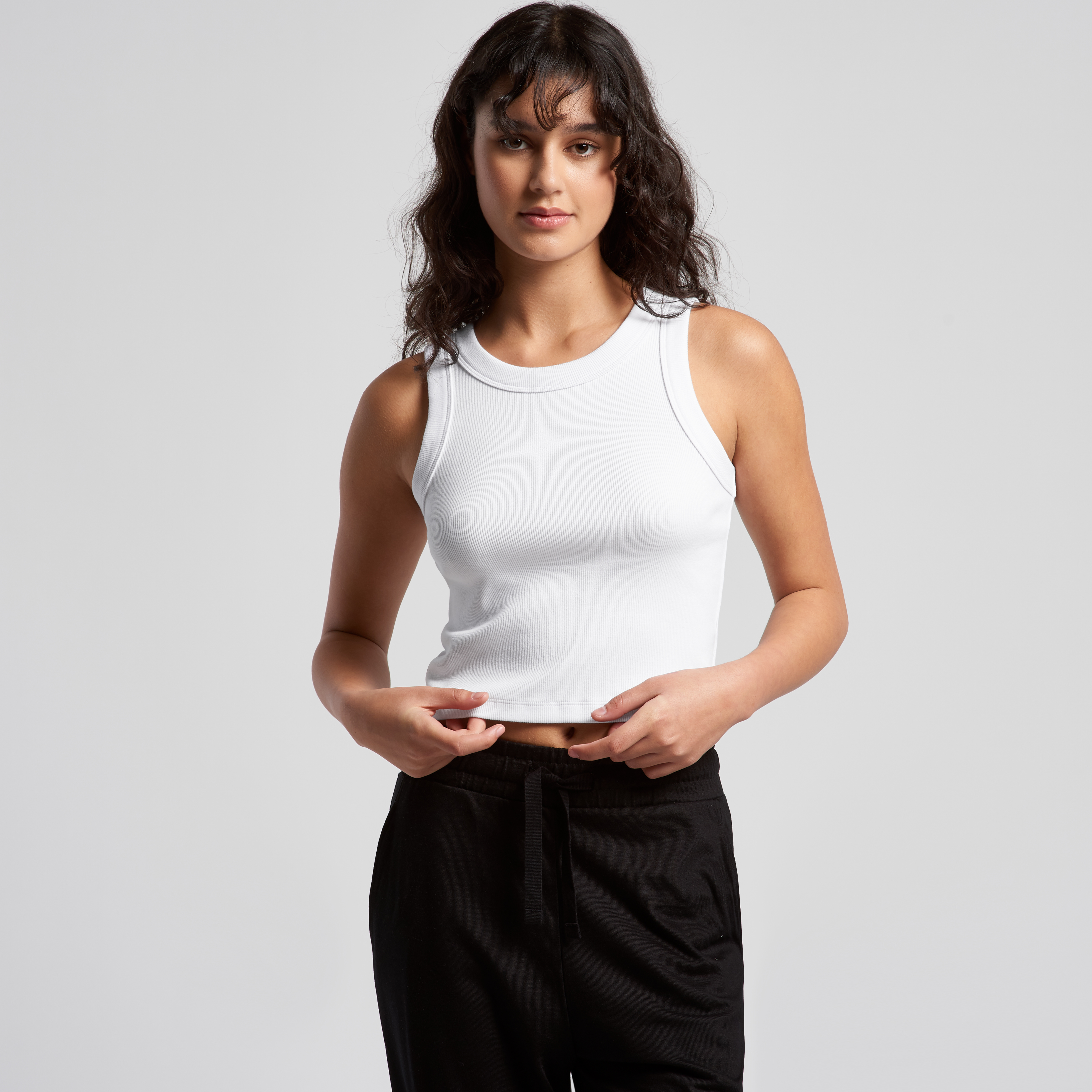 Crew Neck Tank, Self-fabric binding on neck, hemmed armhole edges, side seamed, shoulder to shoulder tape,